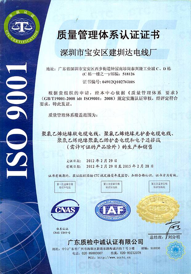 建圳達(dá)電纜立足于中國深圳,擁有技術(shù)精湛的隊(duì)伍、現(xiàn)代化生產(chǎn)設(shè)備、精密的檢測儀器,從原材料、生產(chǎn)、成品嚴(yán)格按照國家標(biāo)準(zhǔn)檢測,通過多個(gè)認(rèn)證。
